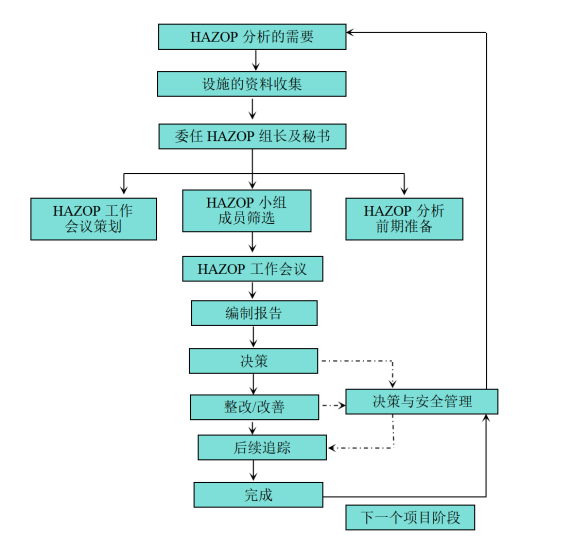 HAZOP(Hazard and Operability Analysis)即危险与可操作性分析,是一种用于辨识设计缺陷、工艺过程危害及操作性问题的结构化分析方法,方法的本质就是通过一系列的会议对工艺图纸和操作规程进行分析。在这个过程中,由各专业人员组成的分析组按规定的方式系统地研究每一个单元(即分析节点),分析偏离设计工艺条件的偏差所导致的危害和可操作性问题,确定危害事件的风险等级,并提出消减风险的安全补偿措施。