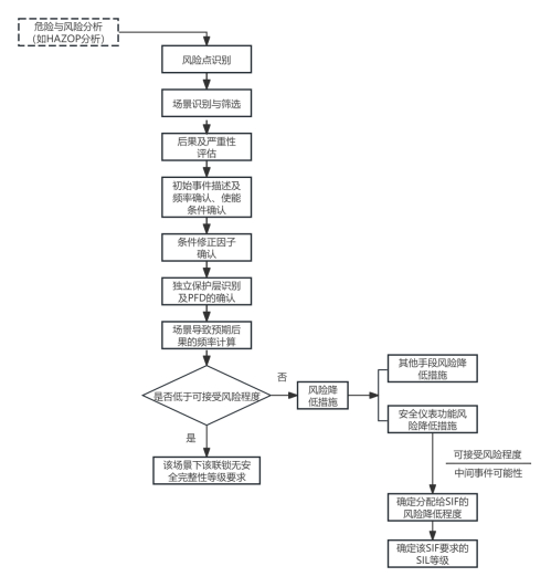 保护层分析(LOPA)是在定性危害分析的基础上,进一步评估保护层的有效性,并进行风险决策的系统方法,是基于事故场景的一种半定量分析方法,其主要目的是确定是否有足够的保护层使风险降低到可接受标准。通常使用初始事件频率、后果严重程度和独立保护层(IPL)失效频率的数量级大小来近似表征场景的风险。